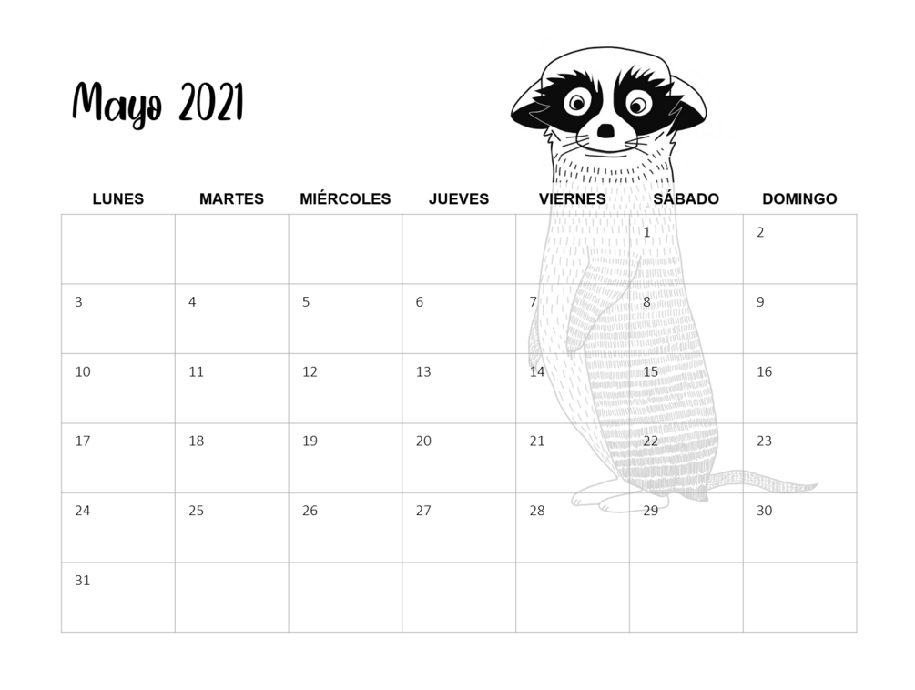 Un archivo PDF imprimible, de planeador mensual del año 2021